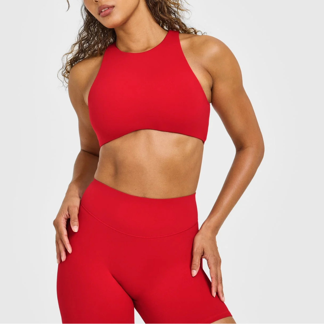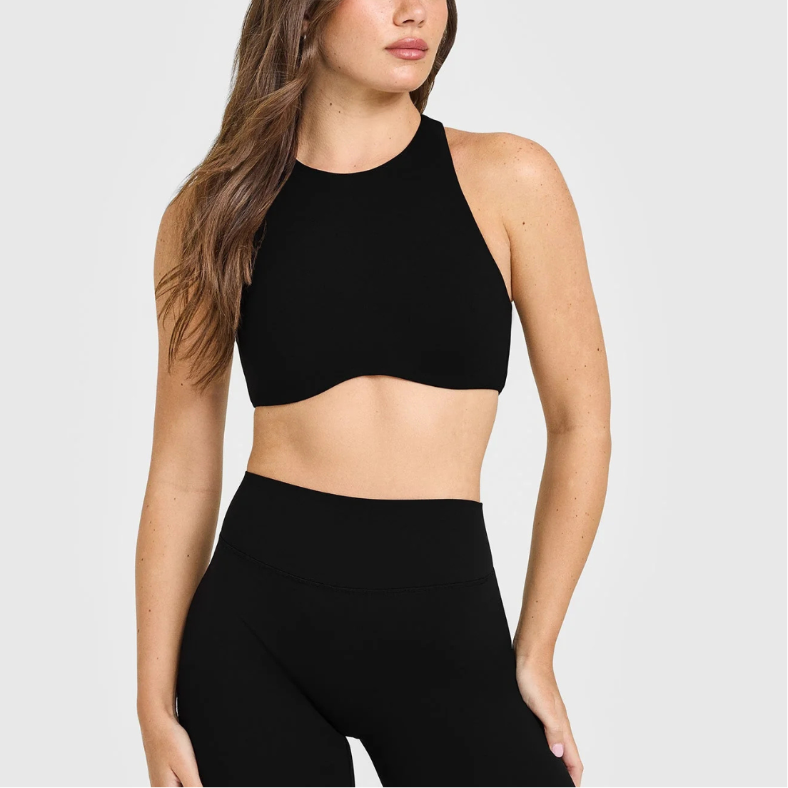 Meet your new workout essential—the Ella High Neck Sports Bra in Black. Designed for serious athletes, this bra features a supportive high-neck silhouette that keeps you secure through every movement. The sleek black finish pairs effortlessly with any gym outfit while the advanced fabric technology wicks moisture away, ensuring you stay cool and focused. With its reinforced construction and comfortable fit, the Ella provides the reliable support you need to push harder and perform better. Elevate your fitness routine with a sports bra that understands your ambitions.